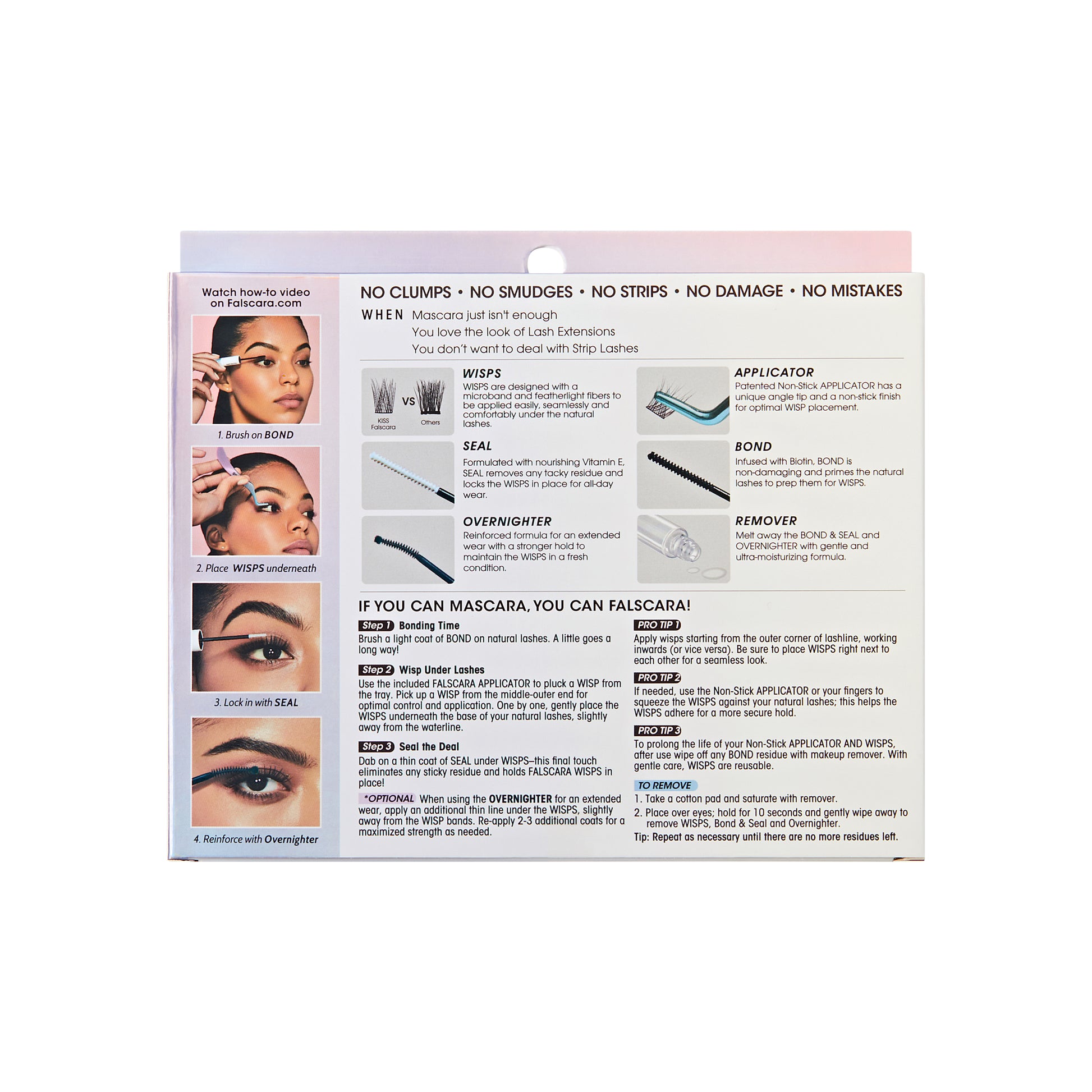 - Lash Clusters, Lash Bond and Seal, FALSCARA Overnighter, & FALSCARA Remover are sold separately or in DIY lash extension kit